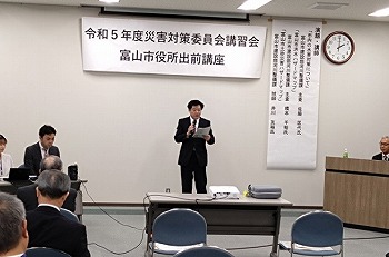 令和5年度の災害対策委員会講習会が富山市役所より富山市建設部河川整備課の主査2名、技師1名の講師の先生をお迎えし開催されました。